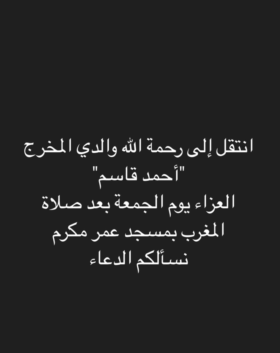 موعد ومكان عزاء المخرج أحمد قاسم والد كريم قاسم