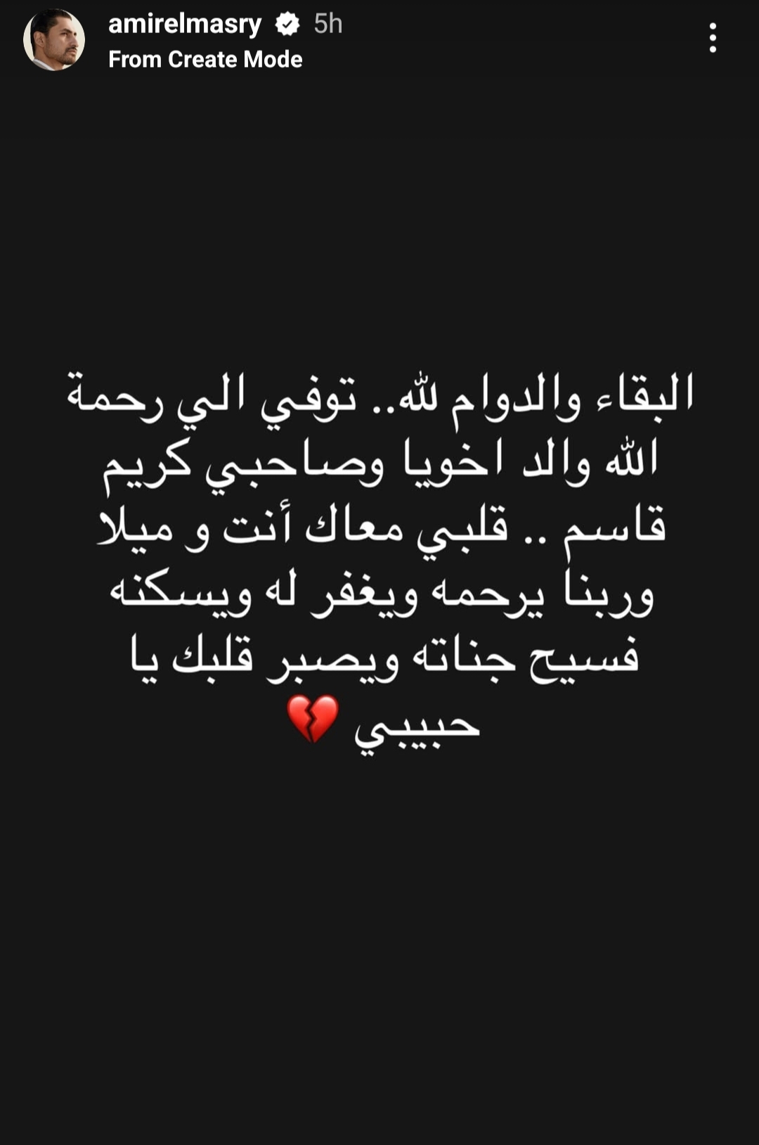 بعد وفاته.. أمير المصري وأحمد حاتم ينعون والد كريم قاسم