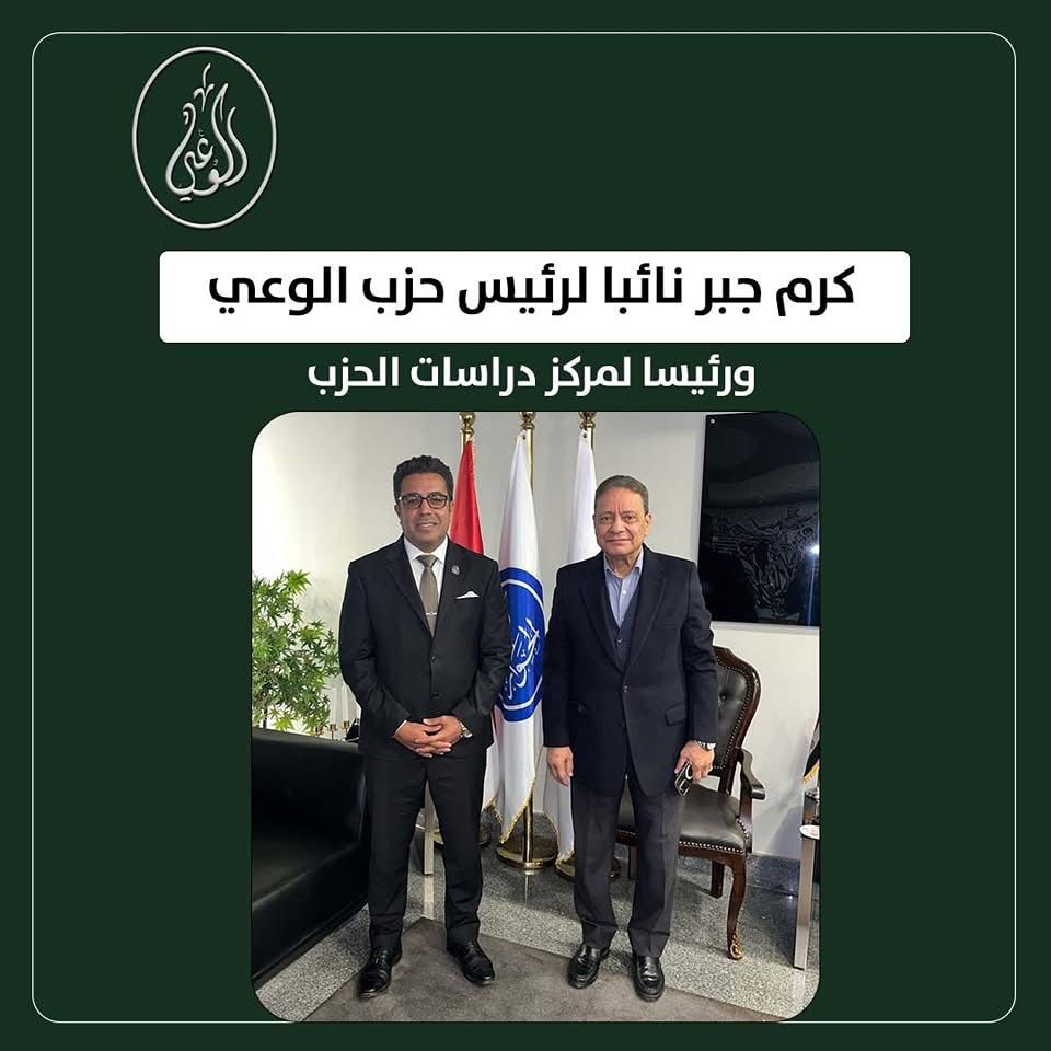 أصدر الدكتور باسل عادل رئيس حزب الوعي قرارًا بتعيين كرم جبر نائبًا لرئيس الحزب و رئيسا لمركز دراسات الحزب وعضوا بالهيئة العليا للحزب
