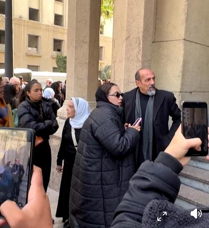 أحمد صيام وابنته بسنت أول الحاضرين في جنازة حماها| صور