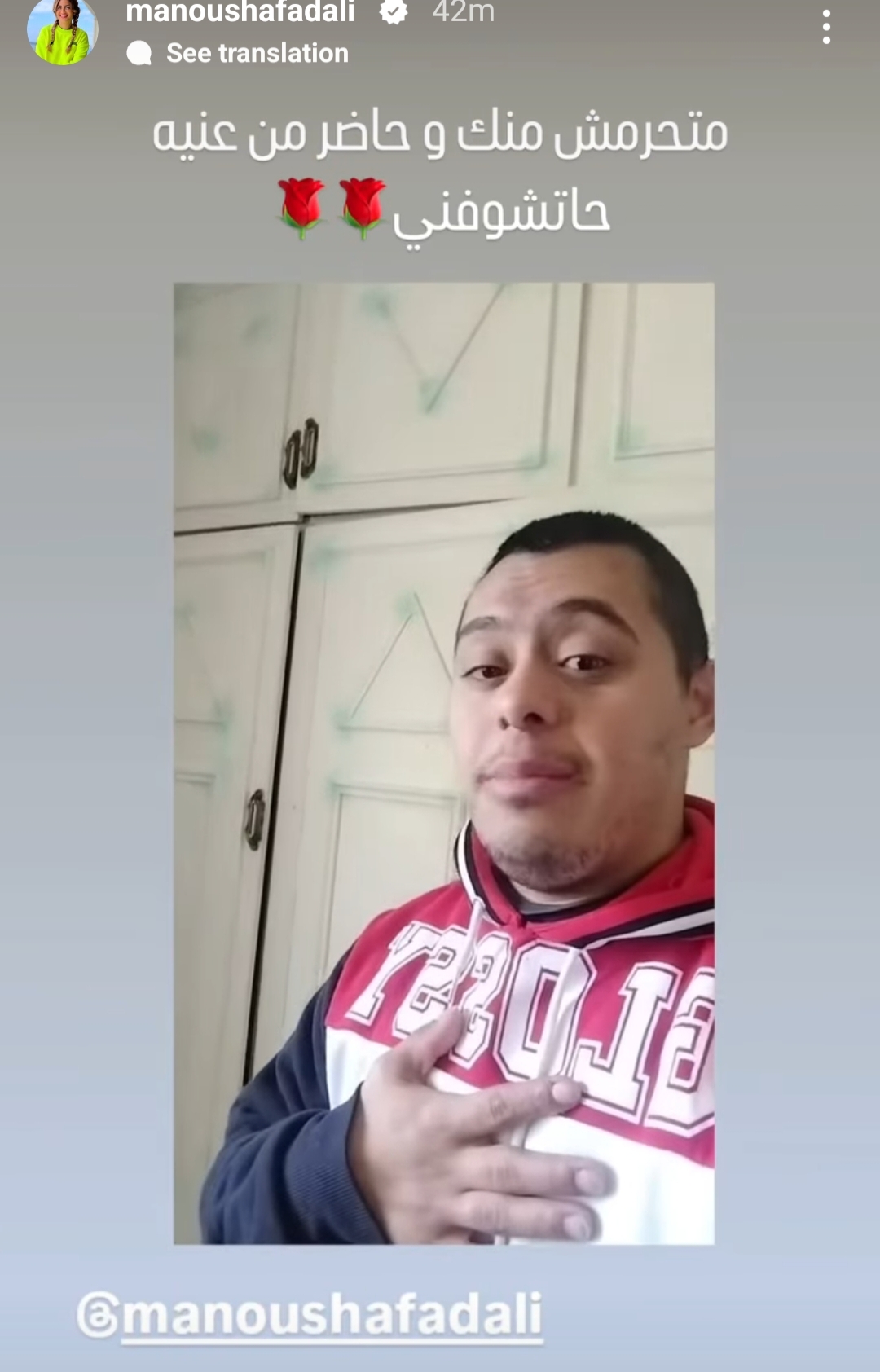 ردت منة فضالي على شاب من ذوي الهمم طلب رؤيتها من خلال مقطع فيديو أعادت مشاركته عبر خاصية الاستوري على حسابها الرسمي على موقع تبادل الصور والفيديوهات انستجرام، ونال رد منة فضالي الذي نرصده في ما يأتي إعجاب جمهورها.
