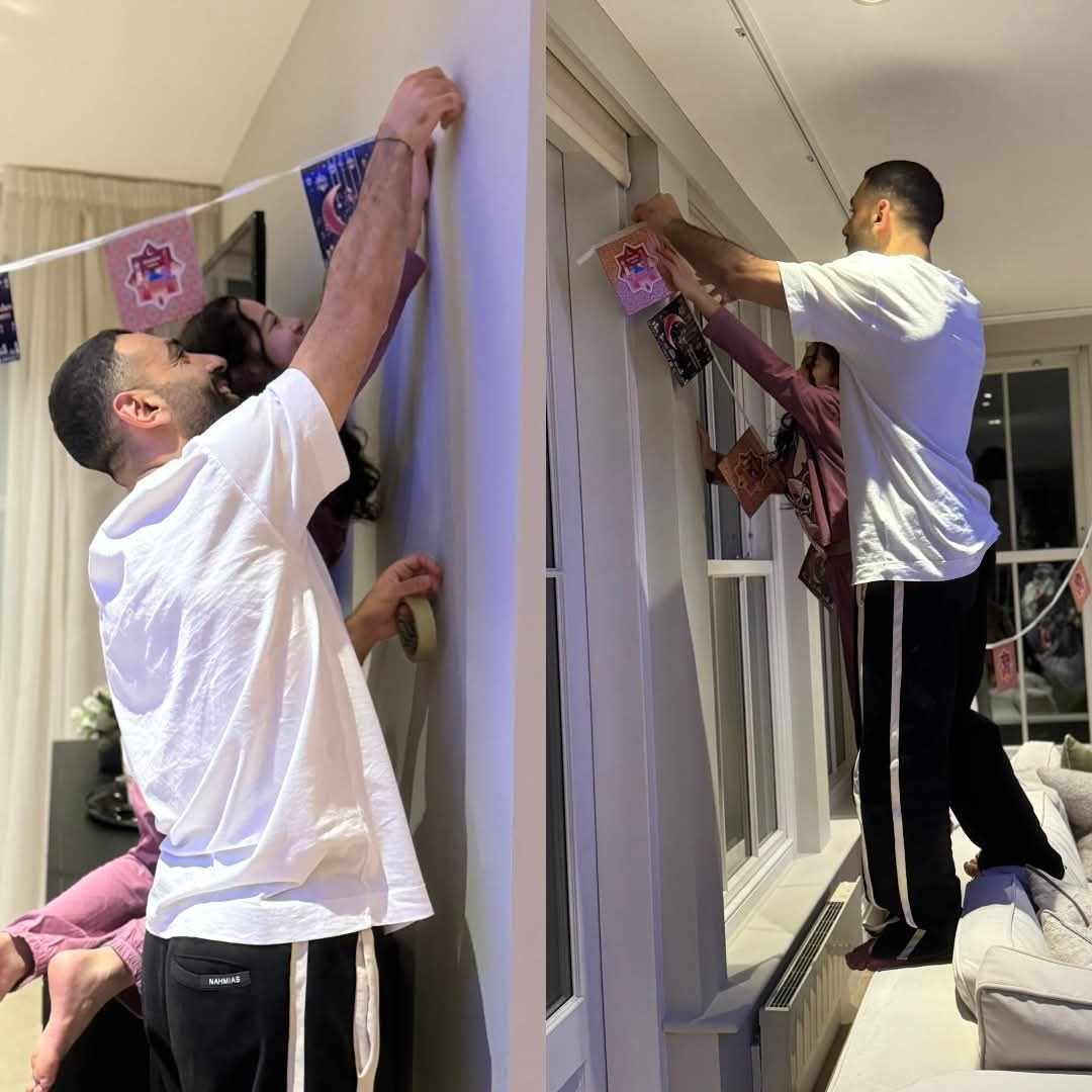 كما حرص محمد صلاح على تجهيز زينة رمضان داخل منزلة في ليلة اليوم الأول لشهر رمضان المبارك، بمساعدة انبته مكة.