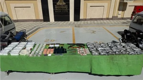 عقب تقنين الإجراءات، وبالتنسيق مع قطاع الأمن المركزي، تم استهداف المتهمين وضبطهم، وعُثر بحوزتهم على: