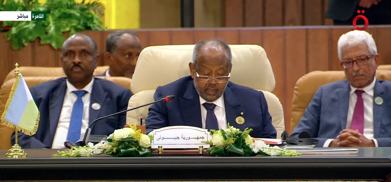 أكد إسماعيل عمر جيله، رئيس جمهورية جيبوتي، أن قمة القاهرة الطارئة تُعد إعلانًا واضحًا عن التزام الدول العربية الكامل تجاه القضية الفلسطينية وحقوق الشعب الفلسطيني، مشددًا على رفض أي ظلم يقع على الفلسطينيين تحت أي ظرف.