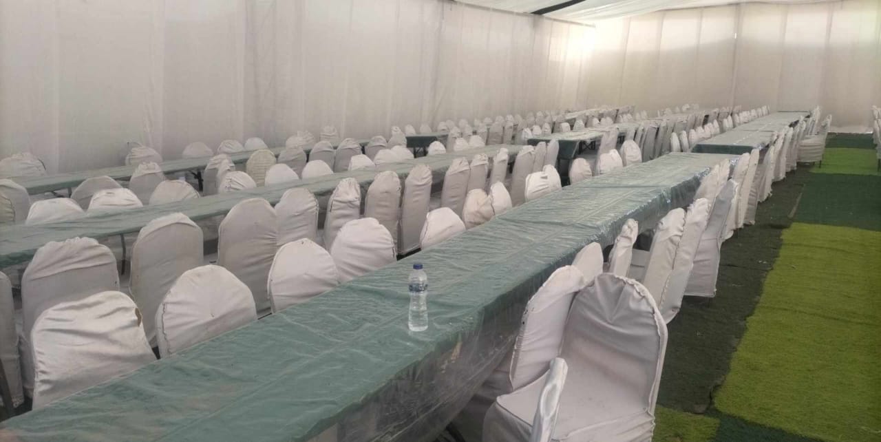خيمة كبيرة يرتص بداخلها مئات الكراسي وأمامهم المنضدة والتي تعتبر أطول مائدة بمحافظة الشرقية تضم أكبر عدد من الصائمين يجتمعون بكل حب، ويصطف بداخلها عدد من الشباب والفتيات يعملون كخلية النحل لترتيب وتنظيم الطعام وتقديمه لجميع المترددين على المائدة وسط ترحيب كبير وابتسامة لا تفارق وجوههم، يستمرون في العمل لتقديم أفضل خدمة للصائمين للوقوف على راحتهم ويظلون بلا طعام حتى يأكل الجميع.