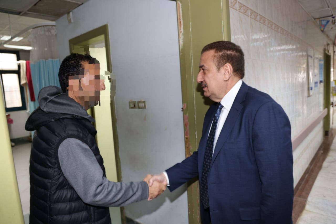 محافظ المنوفية يتفقد جميع الحالات الموجودة بالمستشفى لمتابعة حالتهم الصحية