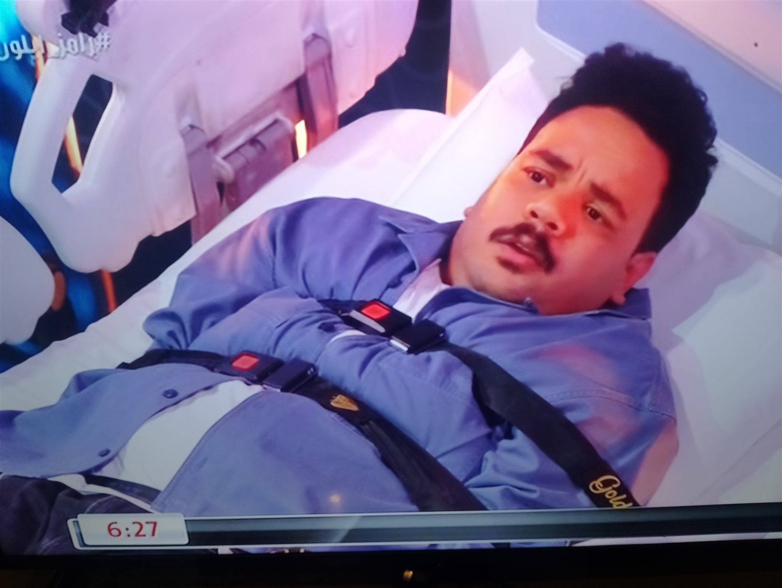 وتابع رامز جلال سخريته من مصطفى غريب: اي طقم المساجين ده.. ده نازل من عربية ترحيلات واي كمية الخدود دي.