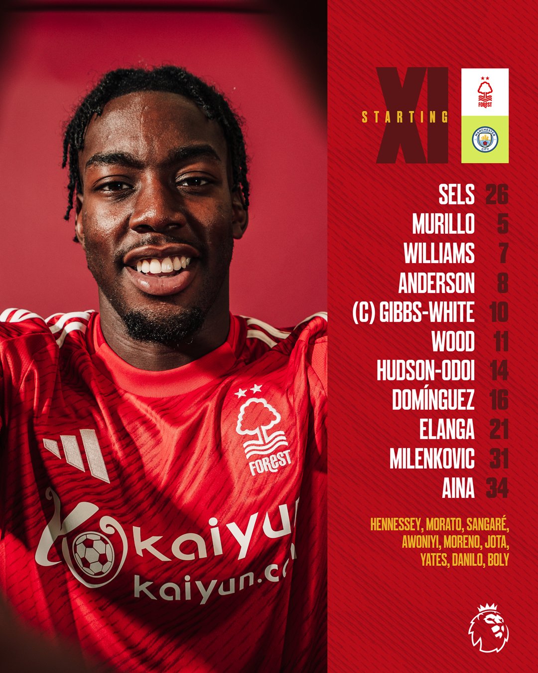 تشكيل نوتينجهام فورست الرسمي ضد مانشستر سيتي في الدوري الإنجليزي الممتاز