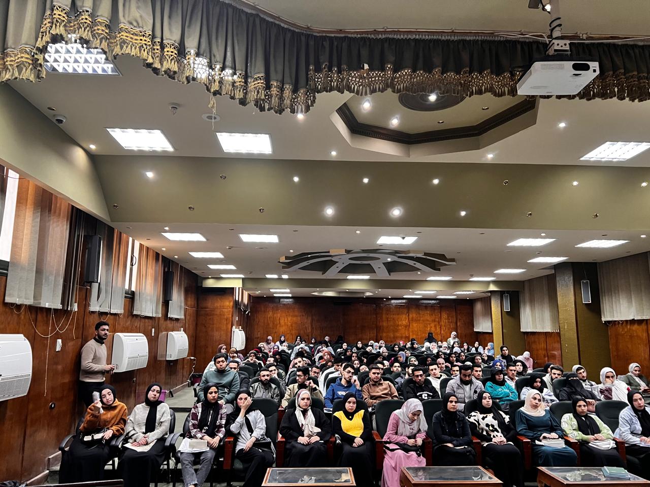 وفي كلمته اوضح د. احمد حسني ، أن الهدف من تنظيم هذا اللقاء تنمية الحس الوطني لدى طلاب الجامعة، وتعريفهم بقيمة الولاء والانتماء والدفاع عن الوطن ، مشيراً إلى أن الشباب يُعد الفاعل الأول في عملية التنمية في المجتمع حيث أن الأساس فيها المورد البشري، وبناءً عليه فإن نجاح التنمية في أي مجتمع مرهون بانخراط الشباب بکل انتماءاتهم وشرائحهم ، مضيفا أن الدولة المصرية حريصة في هذا الاطار على إشراك الشباب في البناء والتنمية من خلال التعليم وتوفير فرص التدريب والتمكين الداخلي وبرامج الإرشاد والمؤتمرات واللقاءات والمنح الدراسية وغيرها مما يساعدهم على تطوير المهارات التي يحتاجون إليها لتحقيق النجاح في نهضة المجتمع ، مستعرضا جهود الدولة في تمكين الشباب منذ إطلاق البرنامج الرئاسى لتأهيل الشباب للقيادة فى سبتمبر ٢٠١٥، و تولي الشباب مناصب نواب للوزراء والمحافظين، بالإضافة إلى مشاركتهم الفعَّالة فى المجالس النيابية، وايضاً مؤتمرات الشباب الوطنية، التى أصبحت منصة حوارية بين القيادة السياسية والشباب، لمناقشة التحديات والقضايا الوطنية، وتقديم المقترحات والحلول، مما عزز ثقة الشباب فى قدرتهم على التأثير والمشاركة فى صُنع القرار، وكذلك إنشاء الأكاديمية الوطنية لتدريب وتأهيل الشباب، والتى تهدف إلى تحقيق متطلبات التنمية البشرية للكوادر الشبابية بكافة قطاعات الدولة والارتقاء بقدراتهم ومهاراتهم ، وتخصيص القيادة السياسية عام ٢٠١٦ عاما للشباب ، بهدف الاستماع إلى تطلعاتهم ومعالجة قضاياهم، وتنفيذ مشروعات صغيرة ومتناهية الصغر، بالإضافة إلى تطوير مراكز الشباب ،