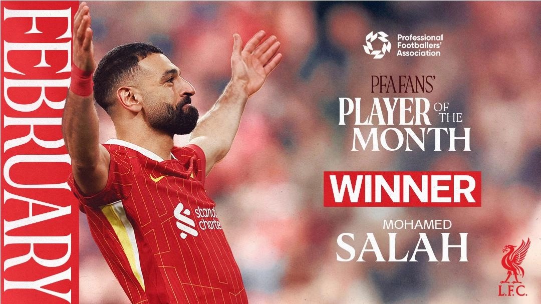 ملك إنجلترا الأول: محمد صلاح يحصل على جائزة أفضل لاعب في الدوري الإنجليزي لـ شهر فبراير المقدمة من رابطة اللاعبين المحترفين