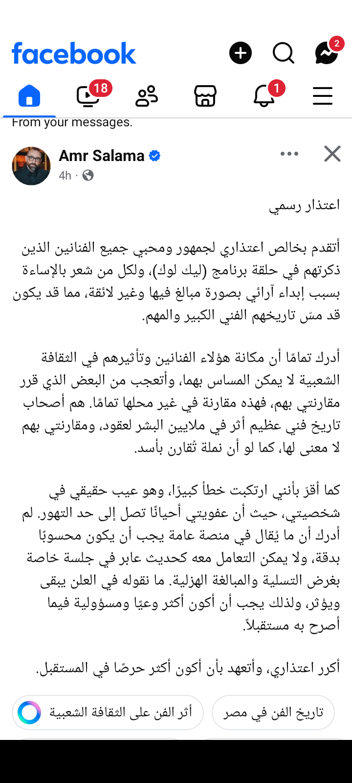 واختتم: أكرر اعتذاري، وأتعهد بأن أكون أكثر حرصًا في المستقبل.