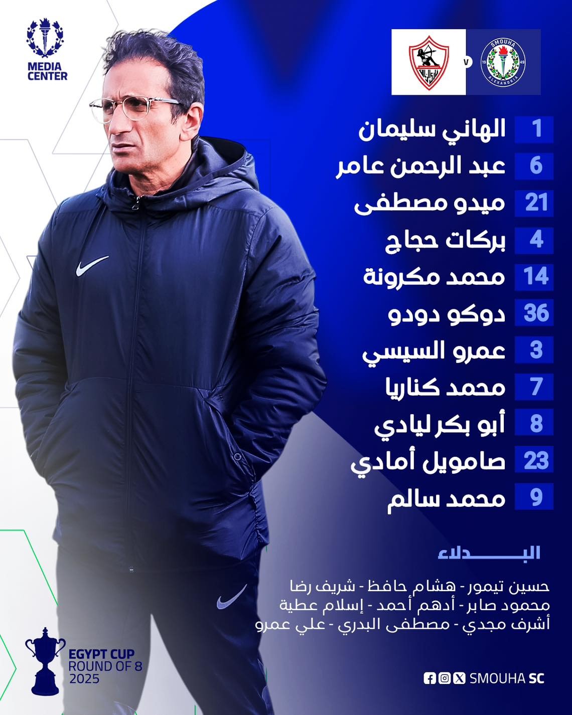 تشكيل سموحة الرسمي ضد الزمالك في ربع نهائي كأس مصر