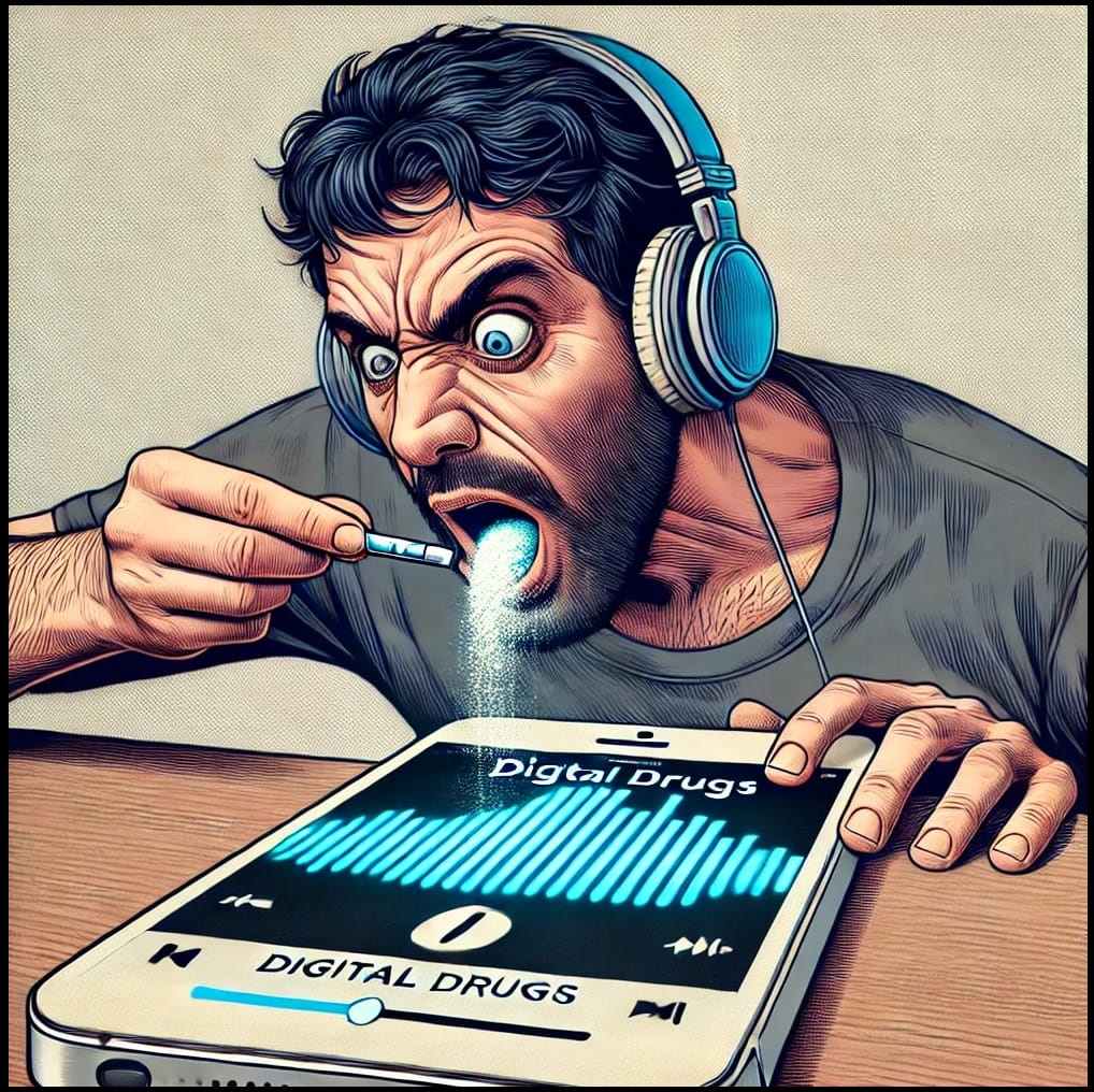وتُعرّف "المخدرات الرقمية" أو ما يُطلق عليه اسم "Digital Drugs" بأنها عبارة عن تردّدات تؤثر في خلايا الدماغ، وتجعلها تهتز بشكل مشوش وسلبي، وتخلق تأثيراً نفسياً يحاكي تأثير بعض المواد المخدّرة، وهي تقنية تقوم على مبدأ الاستماع إلى ملفات صوتية (MP3) تحتوي على نمطين موسيقيين مختلفين في الوقت نفسه، بحيث تتعرّض الأذن اليمنى لطنين يختلف عمّا تتعرّض له اليسرى من نقر، وهذا التداخل الصوتي يقوم بتهييج الدماغ بدرجتين متضادتين، فتحدث الاستجابة للصوت عن طريق الشعور بالهلوسة والتشويش والعبث بالحالة المزاجية، والموسيقى الترددية المسببة للإدمان تكون قريبة من موسيقى (التيكنو) التي يستخدمها كثير من مدمني المخدرات لزيادة تأثير المخدر.
