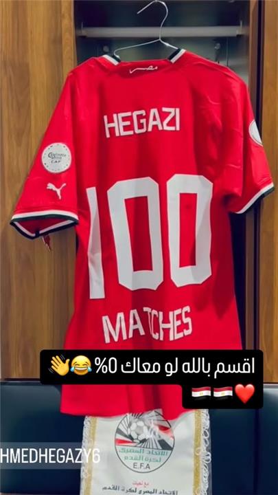 ونشر أحمد حجازي صورة على إنستجرام للرد على حسام حسن ونشر صورة بقميص منتخب مصر تحمل رقم 100 بعدد مبارياته مع الفراعنة.