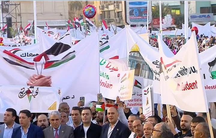 في مشهد يعكس تضامن الشعب المصري الكبير مع القضية الفلسطينية، احتشد ملايين المواطنين في مختلف أنحاء مصر عقب صلاة عيد الفطر المبارك، في تظاهرات ضخمة تعبيرًا عن دعمهم الثابت للشعب الفلسطيني في مواجهة الاحتلال الإسرائيلي ومخططات التهجير القسري.