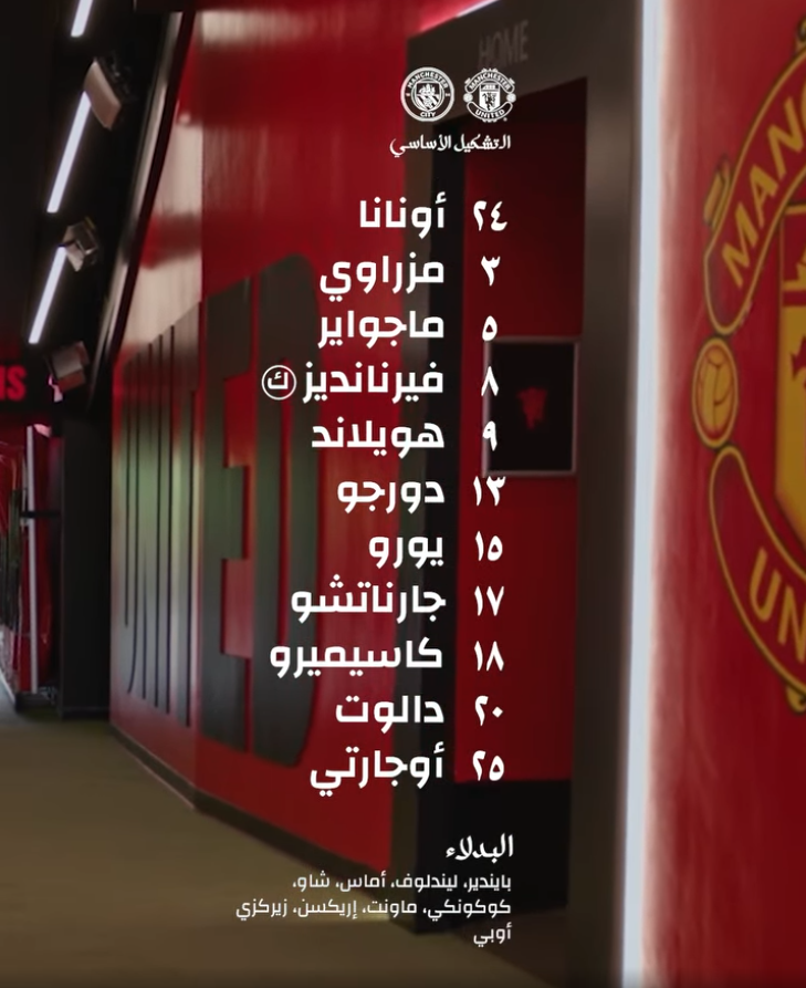 تشكيل مانشستر يونايتد الرسمي ضد مانشستر سيتي في الدوري الإنجليزي الممتاز
