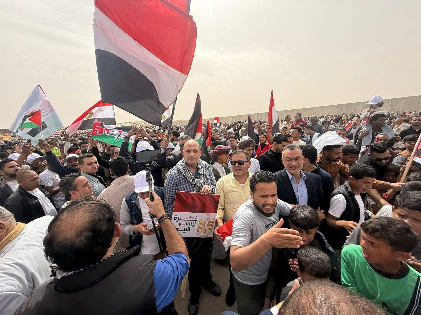 وأعلن المشاركون عزمهم التوجه في مئات الأتوبيسات إلى مدينة رفح على الحدود المصرية الفلسطينية، في مسيرة ضخمة تحمل رسالة شعبية واضحة مفادها أن التهجير جريمة مرفوضة بكل أشكالها، مؤكدين دعمهم للموقف المصري الرافض للتهجير وتصفية القضية الفلسطينية معلنين دعمهم لكافة قرارات الرئيس عبدالفتاح السيسي ورفضه تهجير الفلسطينيين من غزة وتأكيده علي ان ذلك" ظلم لا يمكن ان نشارك فيه".