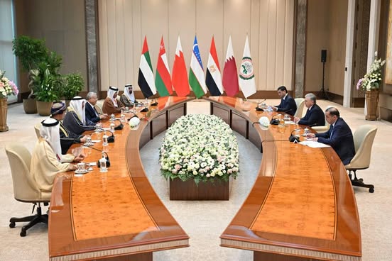 من جانبه، أكد شوكت ميرضياييف رئيس جمهورية أوزبكستان على أهمية دفع وتعزيز العلاقات مُتعددة الأبعاد بين العالم العربي وجمهورية أوزبكستان والمُرتكزة على أرضية تاريخية ممتدة وراسخة، مُعربًا عن ارتياحه العميق لمستوى الشراكة الحالي العربي - الأوزبكي، ومُبديًا التطلع لتعزيز تلك الشراكة لآفاق واسعة النطاق، كما أكد الرئيس الأوزبكي دعم بلاده لحل الدولتين باعتباره حلاً عادلاً وشاملاً للقضية الفلسطينية ومُرتكزًا هاماً لتحقيق الاستقرار في الشرق الأوسط.
