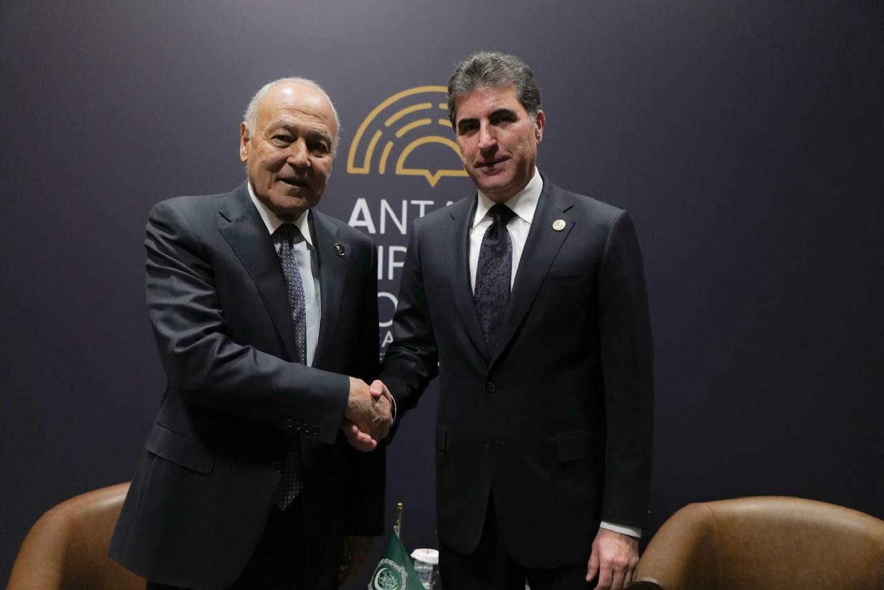 أكد أحمد أبو الغيط الأمين العام لجامعة الدول العربية، حرص الجامعة على مواكبة كافة التطورات في العراق بما في ذلك إقليم كردستان، داعيًا إلى ضرورة العمل على معالجة الملفات العالقة بين أربيل وبغداد بروح إيجابية، وجاء ذلك خلال لقاء مع الرئيس نيجيرفان بارزاني رئيس إقليم كردستان العراق، في إطار مشاركته في أعمال منتدى أنطاليا للدبلوماسية في تركيا.