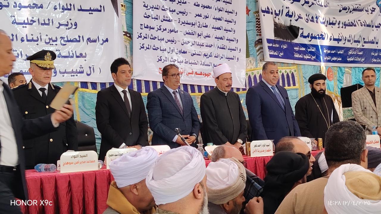 حضر جلسة الصلح المستشار الدكتور حمودة سيد محمود،نائب رئيس هيئة النيابة الإدارية ورئيس لجنة المصالحات،واللواء نور عمر المباحث الجنائية،والدكتور محمد أبو سعدة وكيل وزارة الأوقاف،وفريدة سلام رئيس مركز ومدينة سوهاج،إلى جانب عدد من نواب البرلمان والقيادات الأمنية والتنفيذية.