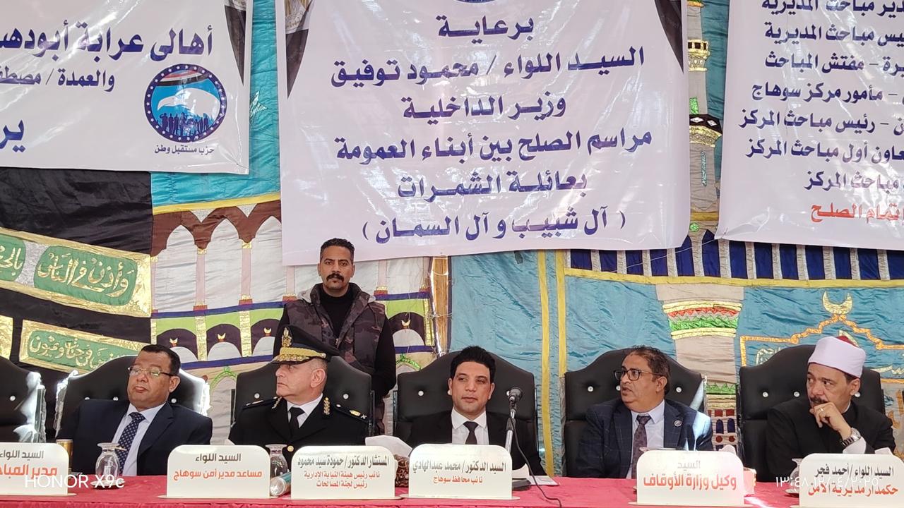 شهد الدكتور محمد عبدالهادي نائب محافظ سوهاج،يرافقه اللواء أحمد فجر، نائب مدير أمن سوهاج،جلسة الصلح التي نظمتها لجنة المصالحات بمركز سوهاج بين عائلتي آل شبيب وآل السمان في عرابة أبو الدهب مركز سوهاج حيث تم خلالها إنهاء الخلافات والخصومات الثأرية في جو يسوده الرضا والتفاهم بين أطراف العائلتين.