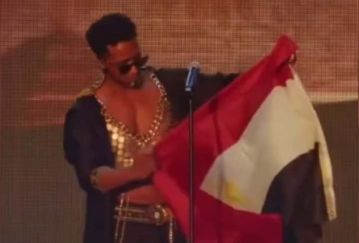 وكان قد تصدرت صور الفنان محمد رمضان في حفل لوس أنجلوس، مواقع التواصل الاجتماعي المختلفة حيث ارتدى زي فرعوني غريب وكانت تلك نيته في البداية ليوصل للجمهور الأمريكي الحاضرة المصرية ويوجه رسالة لهم بأهمية مصر، حتى أنه قام في الحفل برفع علم مصر خلال الغناء.