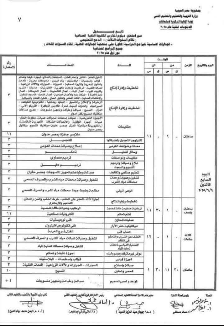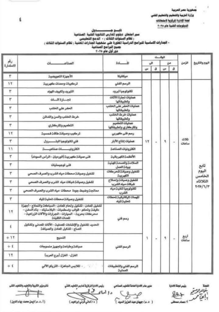 جداول امتحانات الدبلومات الفنية 2025 نظام 3و 5 سنوات