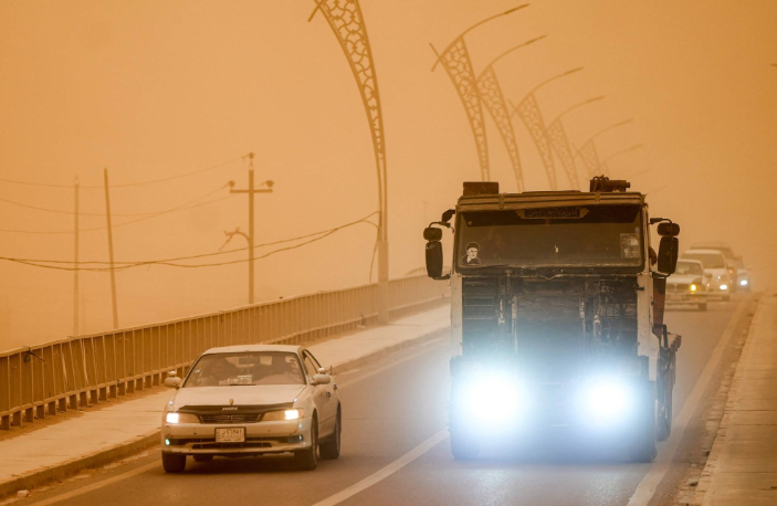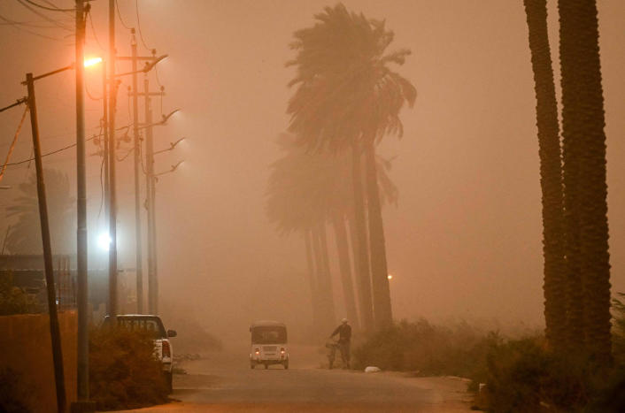 شهدت العراق خلال الساعات الماضية عاصفة رملية مخيفة أدت إلى إصابة آلاف الأشخاص بحالات الاختناق، إلى جانب قيام السلطات في كل من البصرة والنجف بتعليق حركة الملاحة الجوية جراء هذه العاصفة الترابية الشديدة التى ضربت البلاد. وسط تحذيرات أممية من أن العراق أحد الدول التى ستتأثر بتغيرات المناخية.