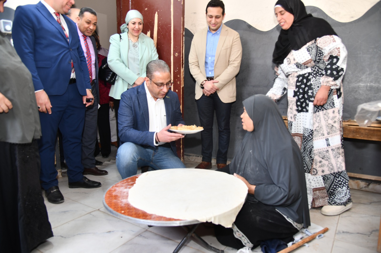 بدأت الاحتفالية، بتفقد محافظ الفيوم ومرافقوه، مقر جمعية المصري الأصيل بقرية الحسينية، ومعرض منتجاب الورش الحرفية بها، الذي ضم (مشغولات للسجاد اليدوي والكليم، وأعمال التفصيل والخياطة والتطريز، والكروشيه والتريكو، وأشغال النجارة والأثاث المنزلي، والديكوباج "الرسم على الخشب والزجاج")، وأشاد المحافظ بجودة الأعمال بالمعرض، وناقش المتدربات في أعمالهن الحرفية واستمع لقصص نجاحهن، كما تفقد ورشة تعليم القراءة والكتابة للفتيات والسيدات، واحتفظ بإهداء بخط يد إحدى المتعلمات، مؤكداً على أهمية توفير الإمكانات للمتدربات على الحرف ومتعلمات القراءة والكتابة، لاستغلال قدراتهن الاستغلال الأمثل، موجهاً ببحث إمكانية إنشاء مصنع للحرف اليدوية لخدمة أهل القرية والقرى المجاورة لها.