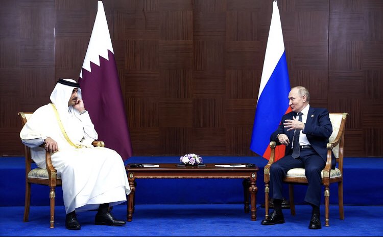 وفي وقت سابق، قال وزير الدولة بوزارة الخارجية القطرية، محمد الخليفي، بأن الشيخ تميم بن حمد آل ثاني يعتزم مناقشة الأوضاع في سوريا وغزة وأوكرانيا مع الرئيس بوتين.