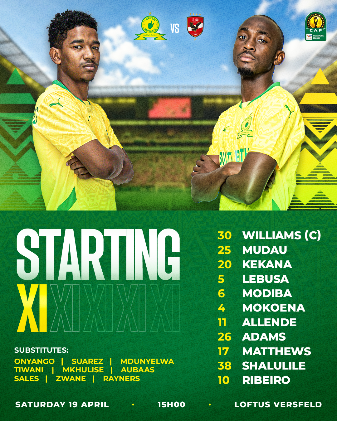 تشكيل ماميلودي صن داونز الرسمي ضد الأهلي في ذهاب نصف نهائي دوري أبطال أفريقيا