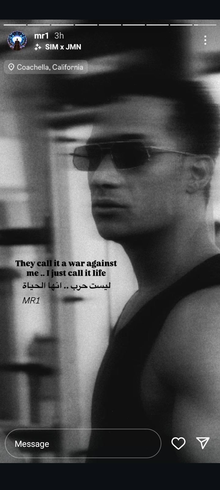 وقال محمد رمضان في منشور رصده موقع تحيا مصر عبر حسابه الرسمي بموقع تبادل الصور والفيديوهات انستجرام، معلقا على حملة الهجوم التي نشبت ضده: "يقولون انها حرب ضدي لكنها هي الحياة".