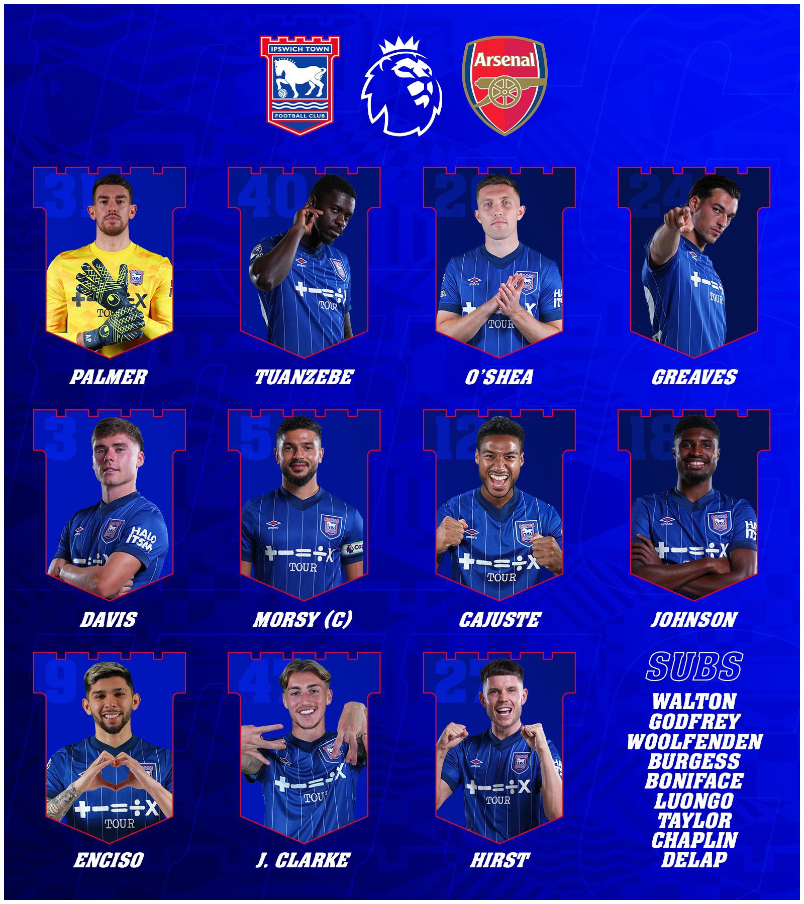 - تشكيل إبسويتش تاون الرسمي ضد أرسنال في الدوري الإنجليزي الممتاز