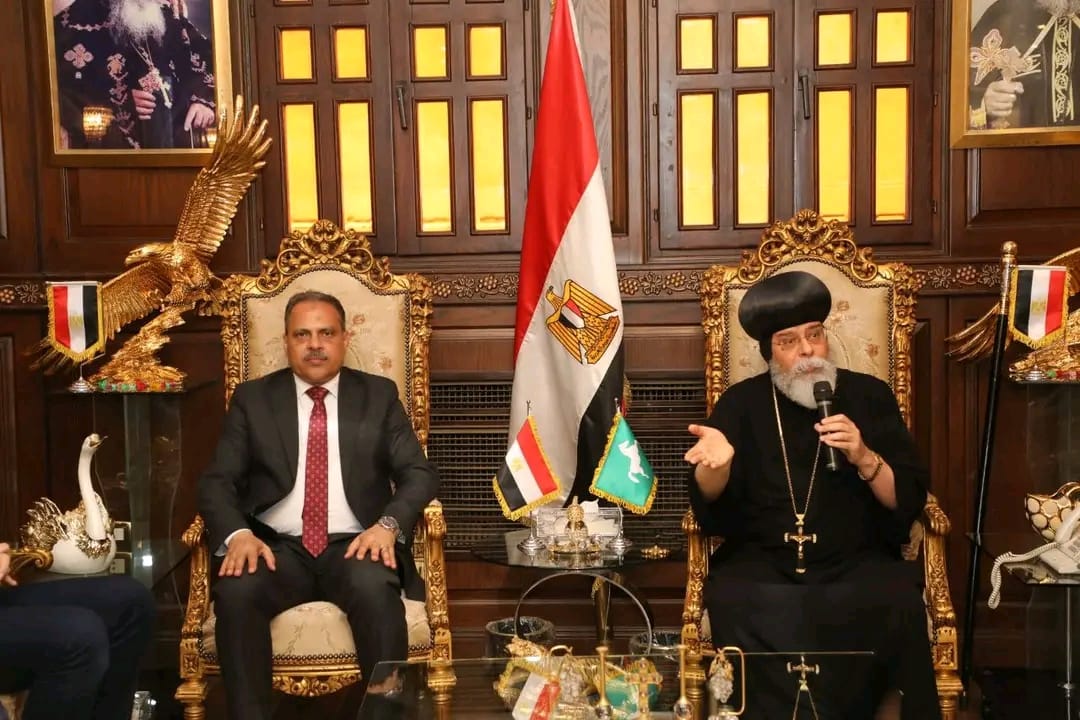 محافظ الشرقية يُهنئ نيافة الحبر الجليل الأنبا تيموثاوس أسقف الزقازيق ومنيا القمح للأقباط الأرثوذكس بعيد القيامة المجيد