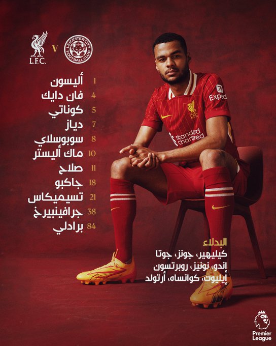 تشكيل ليفربول الرسمي ضد ليستر سيتي في الدوري الإنجليزي الممتاز