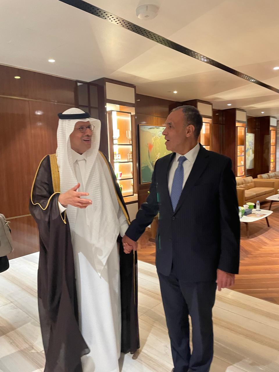 خلال زيارة الوزير عبد العاطى للرياض للمشاركة في أعمال لجنة المتابعة والتشاور السياسي التي استضافتها المملكة العربية السعودية الشقيقة، ولقاء مع الأمير عبد العزيز بن سلمان وزير الطاقة السعودي، أعرب الوزير عبد العاطي عن ترحيب مصر بالتطور الذي تشهده العلاقات الثنائية بين مصر والسعودية في مجالات الطاقة من خلال مجموعة من المشروعات المشتركة، بما يعزز الأهداف التنموية بالبلدين الشقيقين، مشيرًا إلى تطلع مصر لإطلاق المزيد من الشراكات الاستراتيجية مع السعودية في قطاعات النفط، وتعظيم الاستفادة من موقع مصر الإستراتيجي ومواردها الطبيعية. كما أكد أيضاً على أهمية مشروع الربط الكهربائي بين مصر والسعودية باعتباره نواة لربط كهربائي عربي شامل، ونموذجاً يُحتذى به في مشروعات التكامل في مجالات الطاقة بين البلدين الشقيقين.