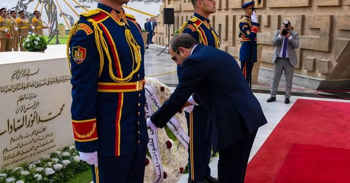 وصرح المتحدث الرسمي باسم رئاسة الجمهورية بأن الرئيس توجه أيضًا إلى قبر الرئيس الراحل محمد أنور السادات، حيث قام بوضع إكليل من الزهور وقراءة الفاتحة ترحمًا على روحه الطاهرة.