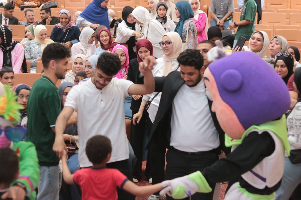 وشهدت الاحتفالية، التي أُقيمت على مسرح الجامعة، حضور عدد من طلاب وطالبات مؤسسات رعاية الأيتام من البنين والبنات، حيث تم استقبالهم بحفاوة كبيرة من طلاب الجامعة والعاملين، لمشاركة الطلاب الأيتام السعادة من خلال فقرات فنية مبهجة، وألعاب ترفيهية، واختُتمت بتوزيع الهدايا التذكارية التي أضفت البهجة على وجوه الأطفال.