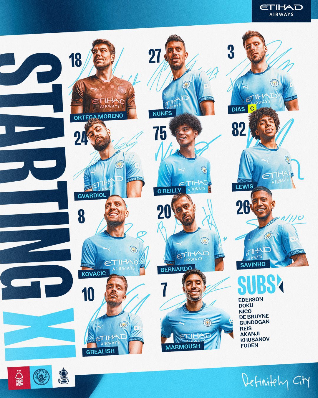 - تشكيل مانشستر سيتي الرسمي ضد نوتينجهام فورست في نصف نهائي كأس الاتحاد الإنجليزي