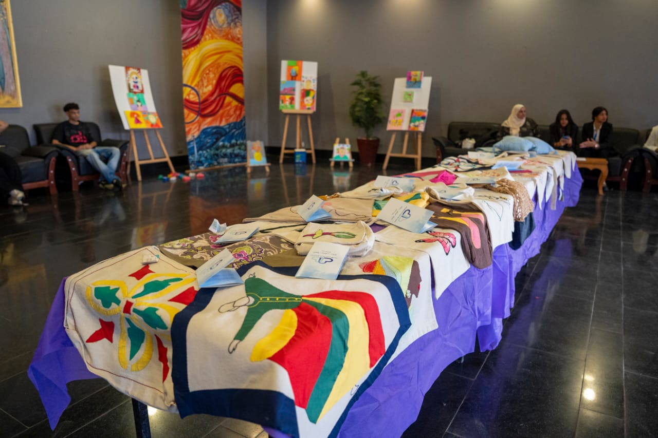 وقبل انطلاق العروض، كان الحضور على موعد مع معرض فني مميز في بهو المسرح، تضمن منتجات يدوية فريدة من إبداع السيدات المحاربات، ضمت مشغولات التطريز والخيامية وأعمالًا فنية تميزت بالأصالة والحرفية. كما استمتع الزوار بجلسة تصوير خاصة عبر "فوتو بوز" تم خلالها طباعة الصور الفورية للجمهور، مما أضفى أجواءً مرحة وتفاعلية.