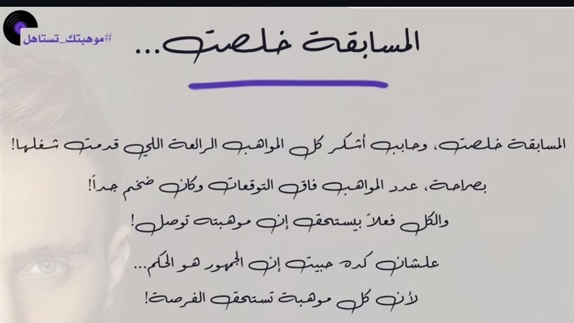 ونشر حسام حبيب بيان عبر حسابه الرسمي على موقع تبادل الصور والفيديوهات انستجرام معلنًا خلاله انتهاء المسابقة التي طرحها واشتراك عدد ضخم من المواهب الشابة التي ترغب في مشاركته ألبومه القادم، وقال حسام حبيب وفقًا لما يرصد تحيا مصر: "المسابقة خلصت، وحابب أشكر كل المواهب الرائعة اللي قدمت شغلها !.. بصراحة، عدد المواهب فاق التوقعات وكان ضخم جداً! والكل فعلاً بيستحق إن موهبته توصل ! علشان كده حبيت إن الجمهور هو الحكم .... لأن كل موهبة تستحق الفرصة! هنبدأ قريب بث مباشر على تيك توك، وكل موهبة هتطلع تقدم شغلها قدام الناس والتصويت هيكون ليكم أنتوا اللي هتختاروا مين يكمل"، وتعتبر هذه المرة الأولى التي يطلق فيها حسام حبيب مسابقة للجمهور ليتقرب منهم ويعطي المواهب الشابة فرصة كبيرة للنجاح.
