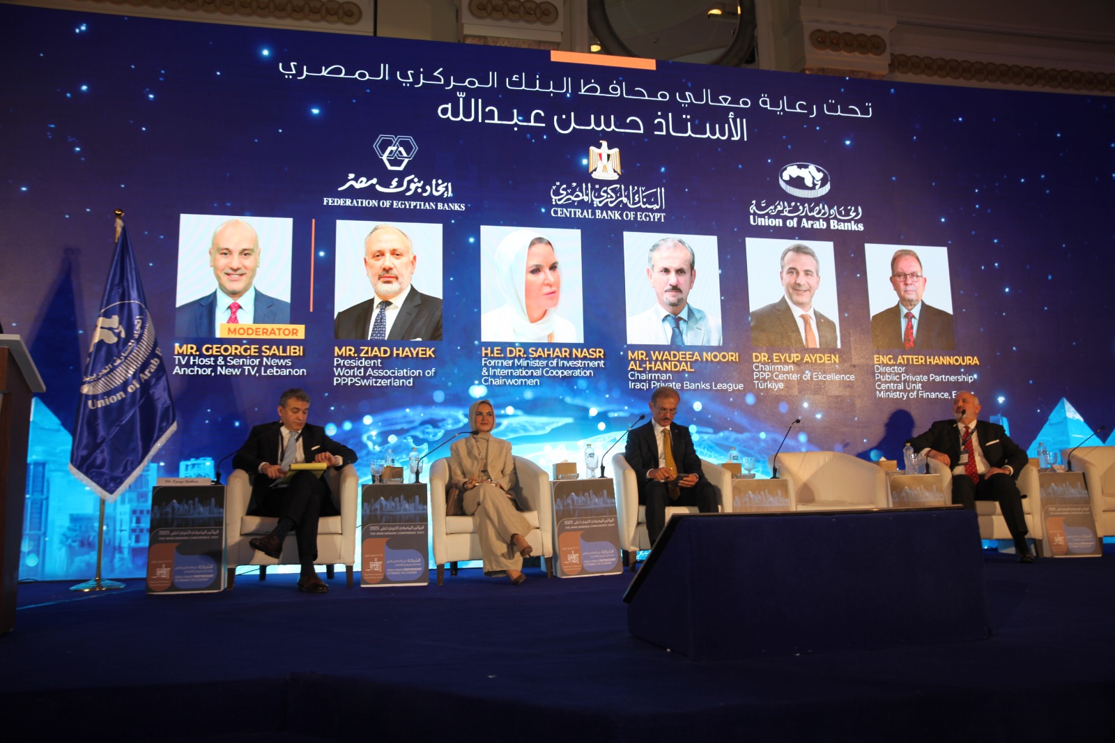 شارك فى الجلسة عدد من الخبراء الاقتصاديين والمصرفيين بينهم زياد حايك رئيس الجمعية العالمية للشراكة بين القطاعين العام والخاص، في سويسرا والمهندس عاطر حنورة ، مدير وحدة الشراكة بين القطاعين العام والخاص بوزارة المالية، المصرية والدكتور أيوب آيدن، رئيس مركز التميز للشراكة بين القطاعين العام والخاص بتركيا ووديع نوري، رئيس رابطة المصارف الخاصة العراقية، وأدارها جورج صليبي الإعلامي اللبناني.