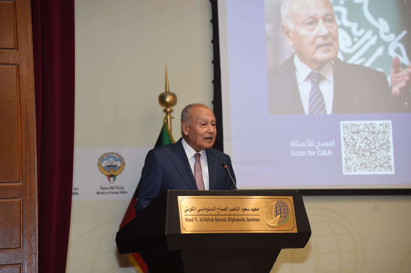 أبو الغيط يلقى محاضرة في المعهد الدبلوماسي الكويتي