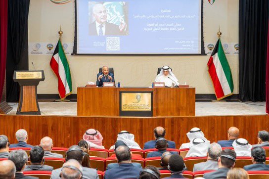 وجاء ذلك خلال محاضرة ألقاها الأمين العام لجامعة الدول العربية بمعهد سعود الناصر الصباح الدبلوماسي الكويتي، اليوم الثلاثاء، بحضور لفيف من أعضاء السلك الدبلوماسي الكويتي، والسلك الدبلوماسي العربي والأجنبي المعتمد لدى دولة الكويت.