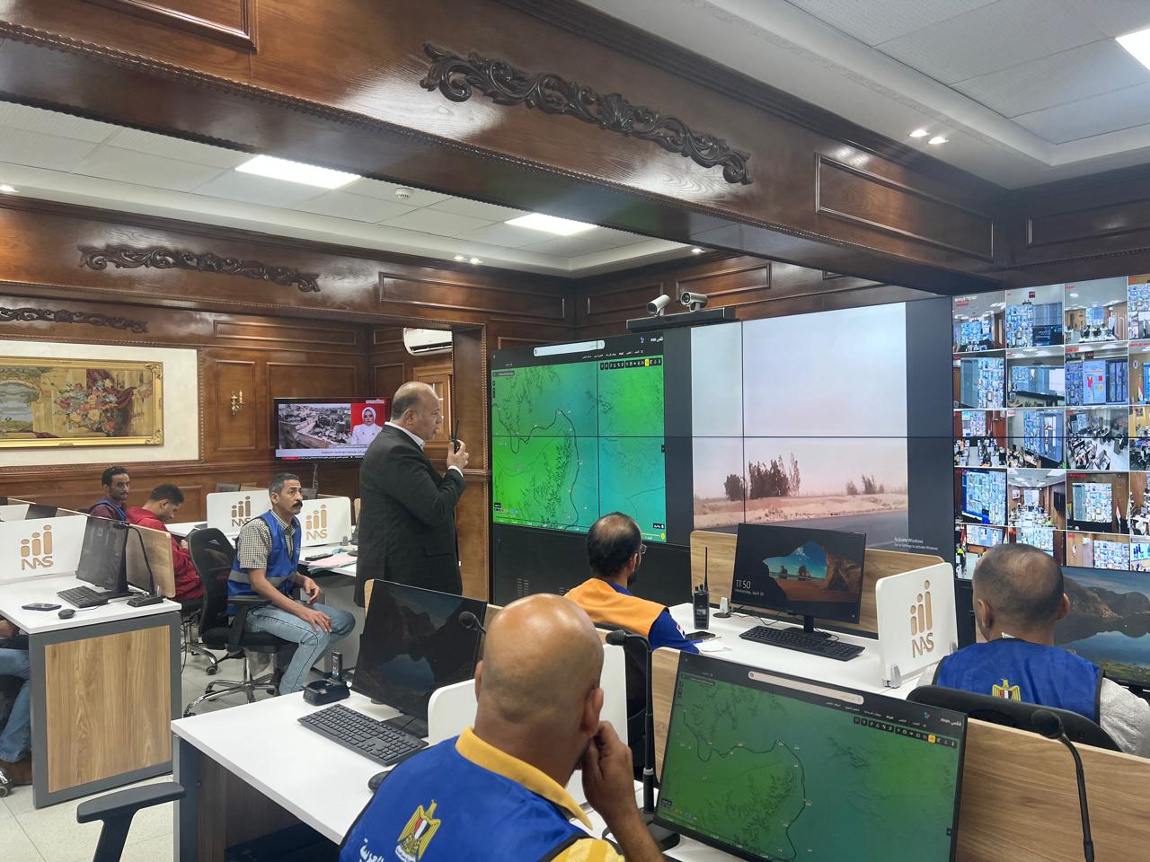وخلال المتابعة، رصد اللواء السعيد تطورات الحالة الجوية من خلال شاشات العرض المتصلة بغرف العمليات الفرعية، والتي تنقل صورًا حية لجميع المواقع الحيوية والطرق الرئيسية على مستوى المحافظة، بما يتيح تقييم تأثير الرياح والأمطار على المرافق الحيوية أولًا بأول، كما جرت متابعة دورية للبيانات الصادرة عن هيئة الأرصاد الجوية والجهات المعنية.