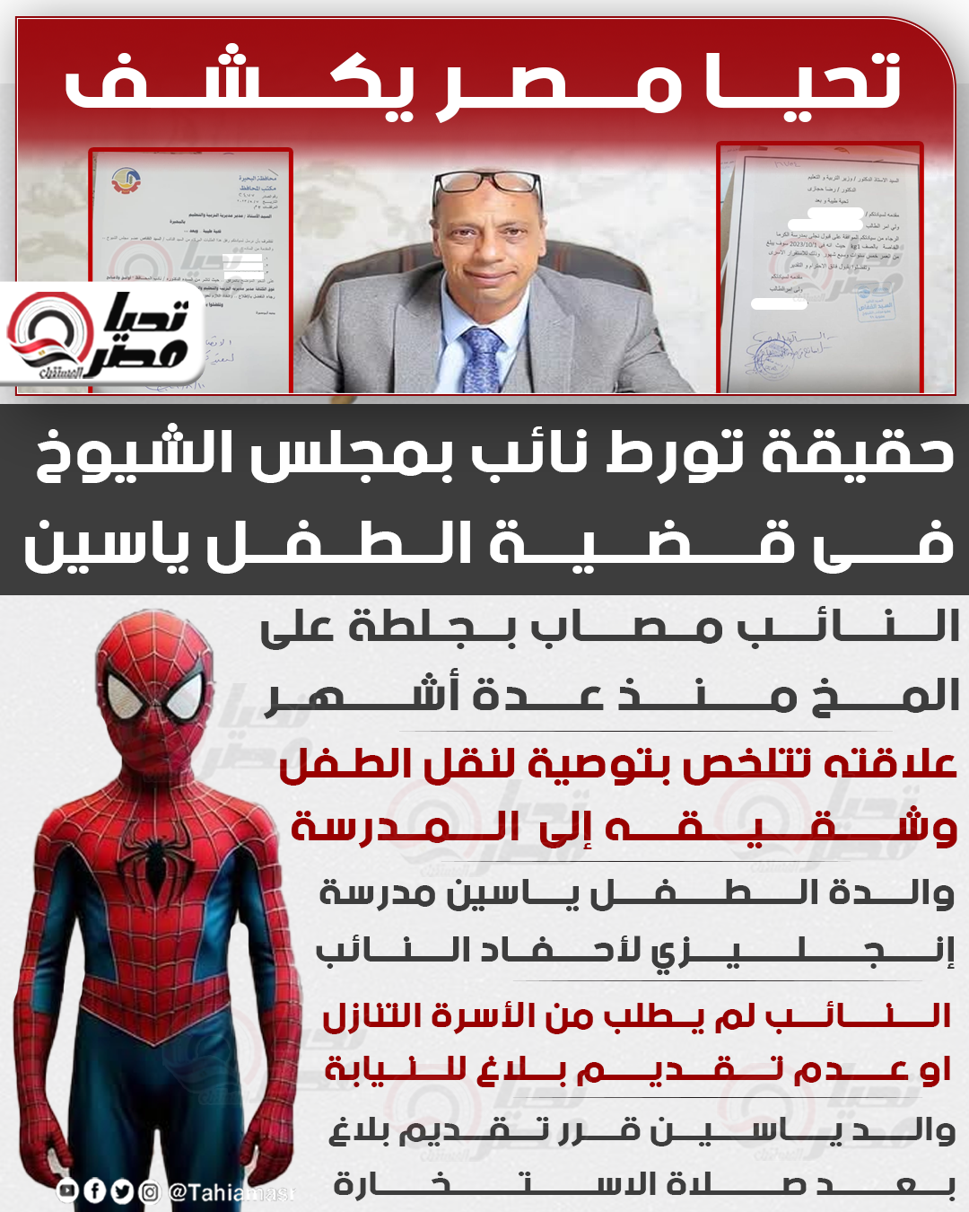 تحيا مصر يكشف حقيقة تورط نائب بمجلس الشيوخ فى قضية الطفل ياسين