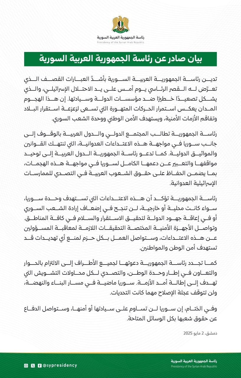 ومع استمرار الغارات الإسرائيلية وتصاعد التوترات، يبقى مستقبل الاستقرار في سوريا معلّقًا على قدرة الأطراف المعنية على تجنب المزيد من التصعيد والعمل نحو حلول سلمية.