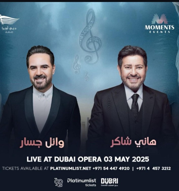 ويستعد المطرب الكبير هاني شاكر للصعود على المسرح خلال دقائق لإحياء حفل غنائي ضخم في أوبرا دبي ويشاركه في الحفل السوبر ستار وائل جسار ومن المتوقع أن يقدم الثنائي باقة من أجمل أغانيهم القديمة والجديدة التي تنال تفاعل الجمهور وإعجابهم حيث يقدم وائل جسار أغانيه بإحساسه العالي وهاني شاكر بكاريزمته العالية على المسرح، وكانت روجت الشركة المنظمة للحفل له عن طريق موقع تبادل الصور والفيديوهات انستجرام حيث نشرت البوستر الدعائي الخاص بالحفل وعلقت عليه: "حفل أمير الغناء العربي هاني شاكر والسوبر ستار وائل جسار على مسرح دار أوبرا دبي يوم 3 مايو".