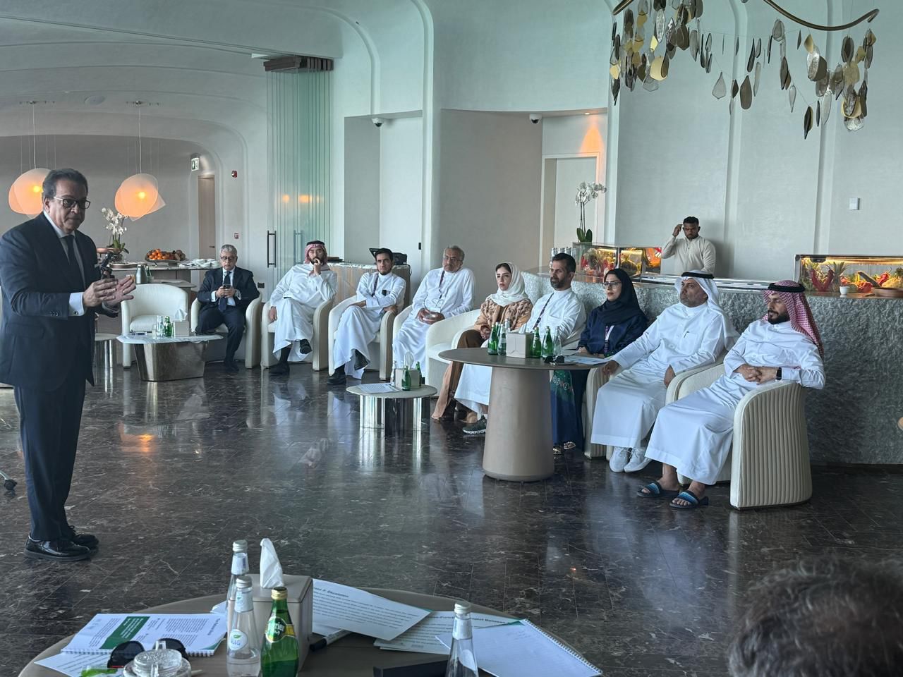 جاء ذلك خلال محاضرة ألقاها الدكتور خالد عبدالغفار، بعنوان «الثورات الصناعية والرعاية الصحية» بحضور الدكتور فهد بن عبدالرحمن الجلاجل وزير صحة المملكة العربية السعودية، وعدد من مسئولي القطاع الصحي السعودي، ضمن برنامج زيارته للمملكة.