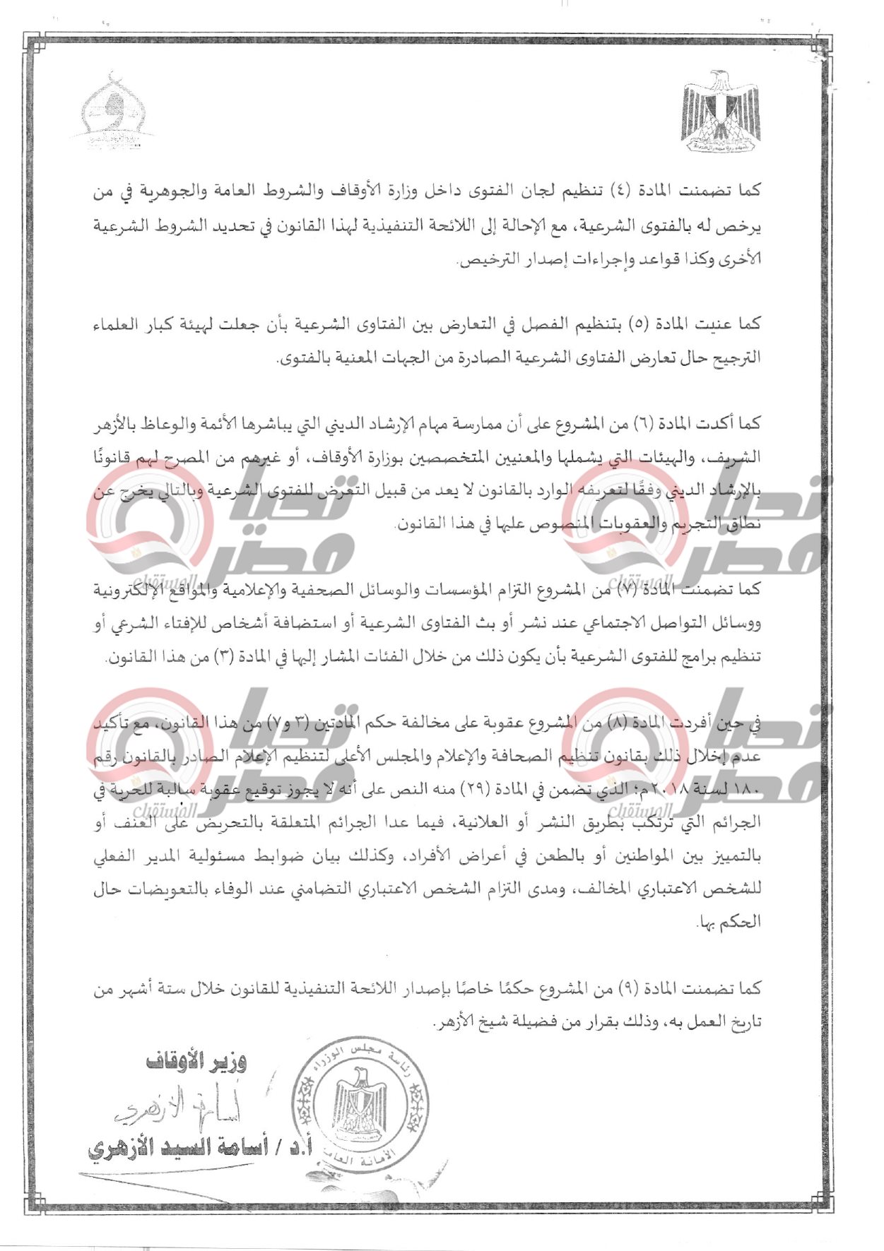 بعد رفض الأزهر.. تحيا مصر ينشر نص مشروع قانون إصدار الفتوى المعروض علي البرلمان